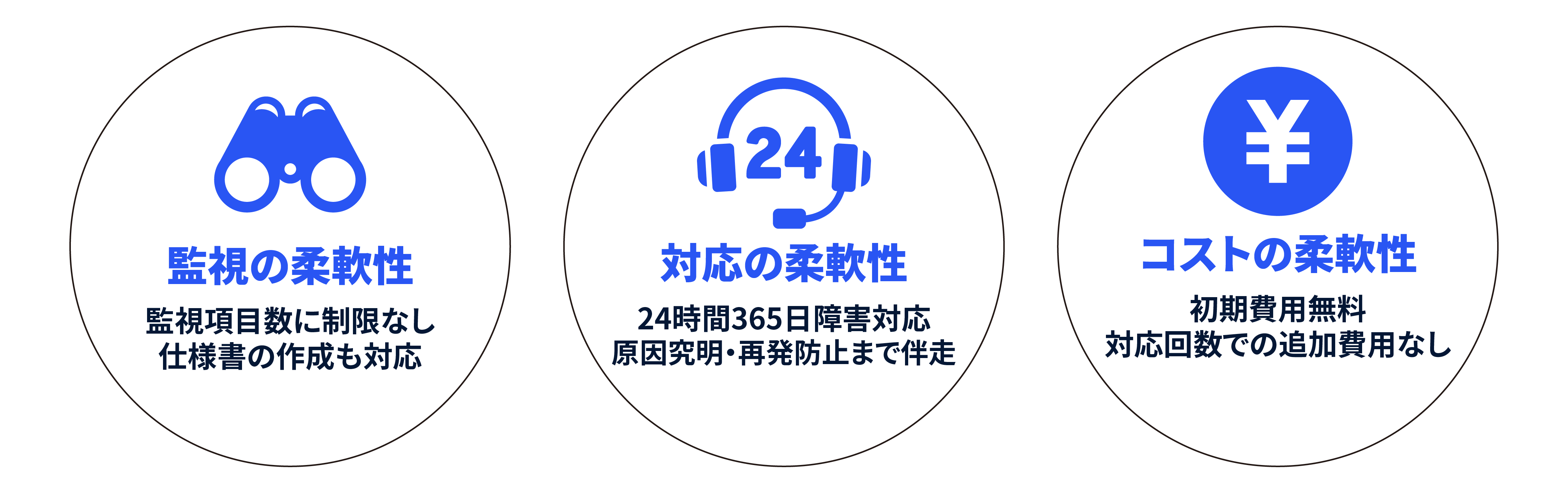 監視項目数と監視内容によって金額が変わることはございません。お客様の環境に合わせて、最適な監視をご提案いたします。